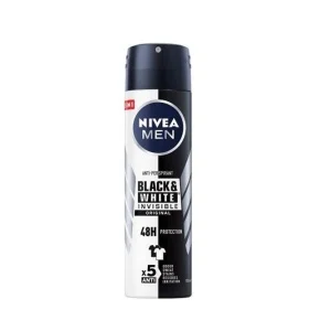 Antyperspirant NIVEA MEN Invisible w sprayu for Black&White to nowy dezodorant opracowany we współpracy z ekspertami z dziedziny tekstyliów, by zapewnić Ci mocną i niezawodną ochronę przed poceniem się, bez ryzyka pobrudzenia ubrań. Antyperspirant NIVEA w sprayu nie pozostawia białych plam na czarnych ubraniach ani żółtych na białych. Unikalna formuła NIVEA Black&White chroni Cię przed nadmiernym poceniem przez 48 godzin i pomaga zachować pierwotny kolor ubrań. Dezodorant NIVEA Black&White został opracowany we współpracy przez Międzynarodowy Instytut Tekstylny Hohenstein.